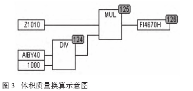 最后根據(jù)流量計(jì)參數(shù)4~20mA中對(duì)應(yīng)單位體積流量量程,體積流量x密度/1000=質(zhì)量流量,計(jì)算出對(duì)應(yīng)的瞬時(shí)質(zhì)量流量,圖3為換算示意圖。