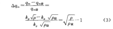 在其他參數不變的情況下,qm與ρ之間的關系為:qm≈k,√ρ??梢钥闯?水蒸氣的流量與其密度的平方根成正比關系。水蒸氣是可壓縮性氣體,當其壓力、溫度變化時,其密度將發(fā)生明顯變化,這將引起流量很大的誤差。實際流體狀態(tài)(壓力、溫度)與流量計設計時的狀態(tài)(壓力、溫度)偏離造成的相對誤差可由公式(3)表示: