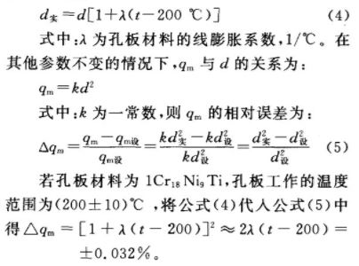 測量水蒸氣流量時,如果設計工況為200℃,孔板內徑為d,則孔板內徑在實際工作狀態(tài)下的修正公式為: