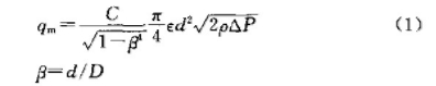 式中:qm為質量流量,kg/s;C為流出系數;D為管道內徑,m;ε為節(jié)流件正端取壓口平面上的氣體膨脹系數;d為工作條件下節(jié)流件的開孔直徑,m;ρ為節(jié)流件人口端流體密度,kg/m³.
