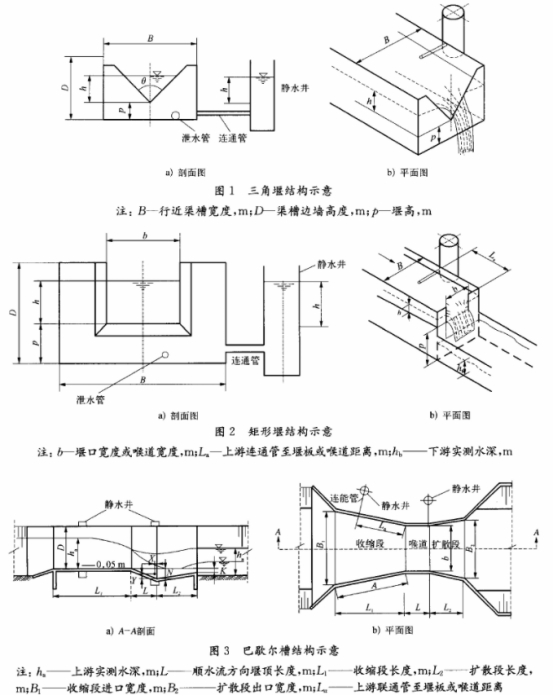 因篇幅有限,文中僅介紹三角堰、矩形堰及巴歇爾槽的測(cè)量原理及計(jì)算公式。