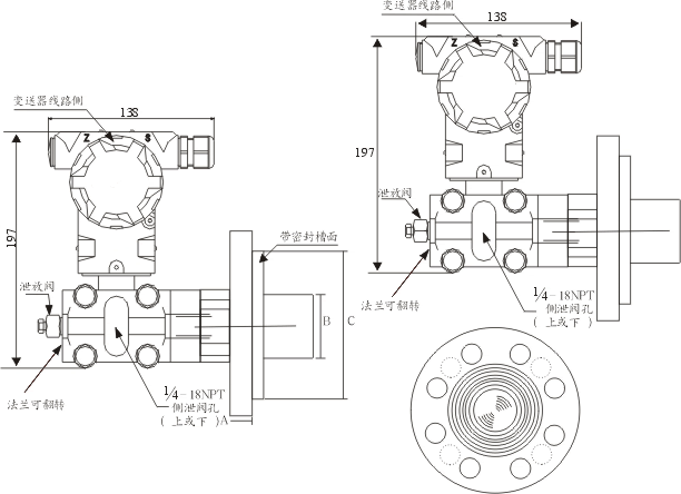 HD3351LT型的安裝法蘭標(biāo)準(zhǔn)按ANSI,法蘭有3〃和4〃規(guī)格,法蘭等級分為